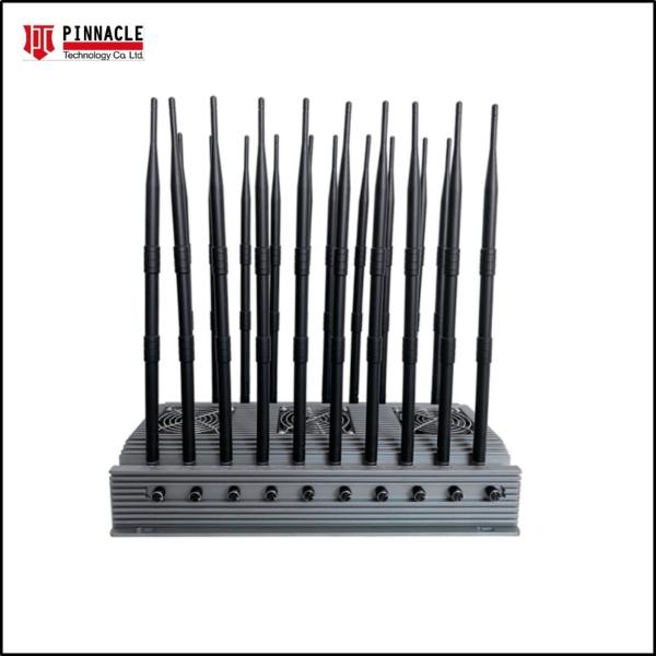 Advantage: l All in One with 20 frequencies high power desktop designed for blocking all mobile signals 2G/3/4G/5G/+WIFI+GPS+Remote control signals. l Each band power can be adjustable by Knobs l Support IR remote control l Support external battery with 1hours operation for option l Each channel module With Knob switch design, for turning on/off any signal band freely and adjust the power l Aluminum housing is high safety and good heat dissipating l Built-in Smart cooling fans. l Easy operation and installation, non-stop working l High/Low temperature over protection, VSWR over protection l Block down link BCC channel only, no any interference with base stations l High frequency stability with PLL circuit design l Special modulating scheme improved jamming efficiency